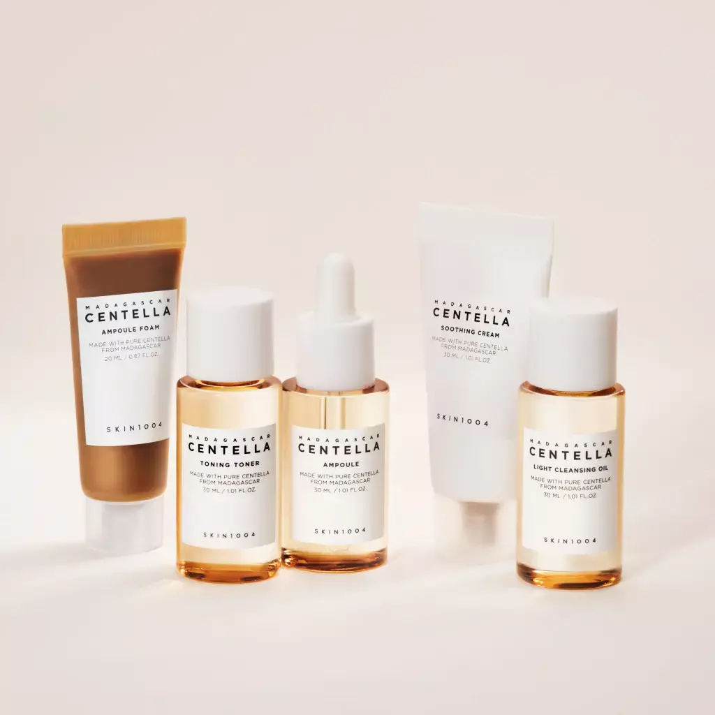 Leve o poder calmante da Centella de Madagascar para onde você for com o SKIN1004 Madagascar Centella Travel Kit.